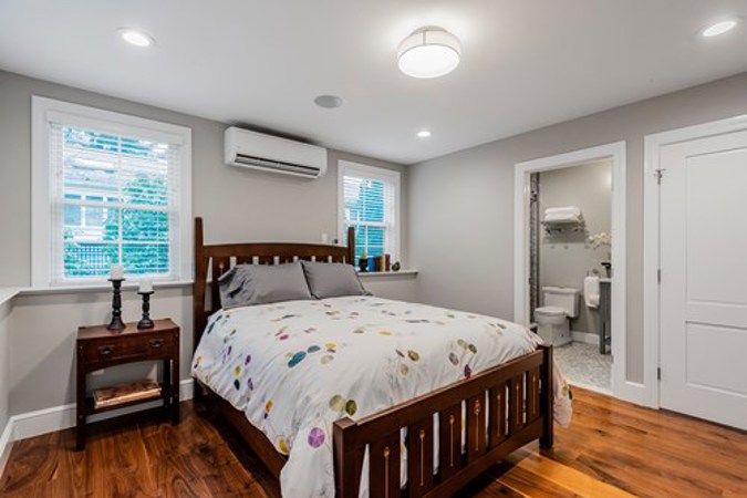 The main floor master suite is private and spacious. The addition included a large bedroom and allowed us to rework the existing space into a walk-in closet.
