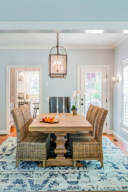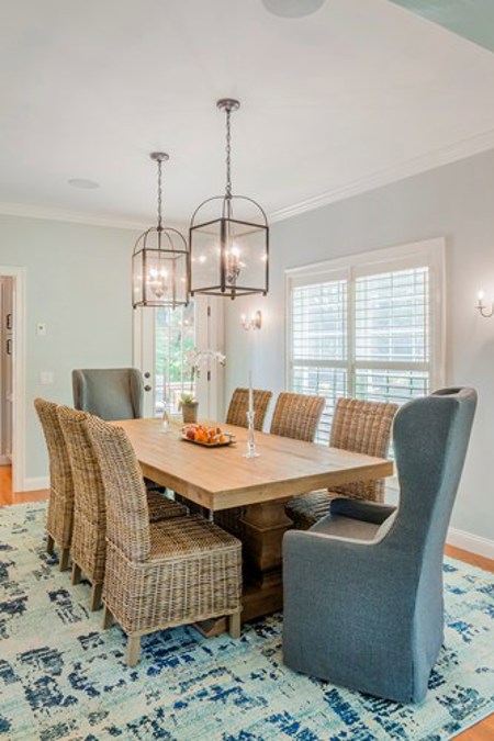 This large dining room has a beachy yet elegant feel. Lots of room at this table to host a party or have a lively family dinner.