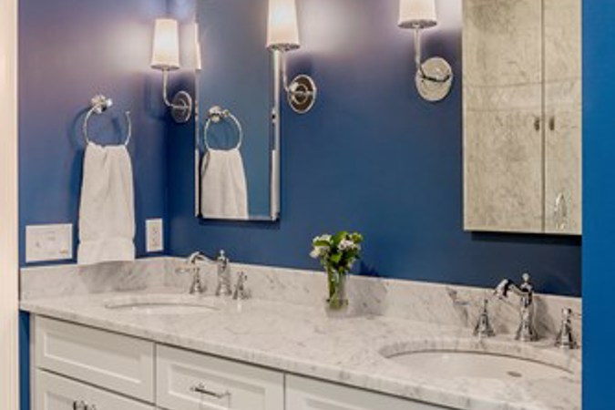 The family decided tear down their existing home and to go modular. They found Sterling Homes online and were impressed by our experience building both traditional and modular homes. This 3,300 sq ft center entrance colonial boasts four bedrooms, 3 ½ baths, and expansive living space with high ceilings. The large kitchen and dining room are perfect to host holiday gatherings, and the den and living room offer a variety of spaces to relax – they are even connected by a see through fireplace! The kids love throwing their stuff in the mudroom (mom and dad like that too) and they have their own space on the third floor to gather with friends.