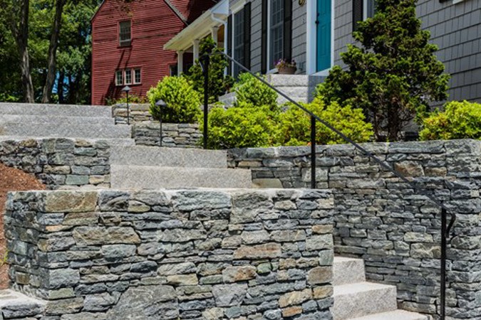 Beautiful stonework welcomes visitors into the entrance of the home.