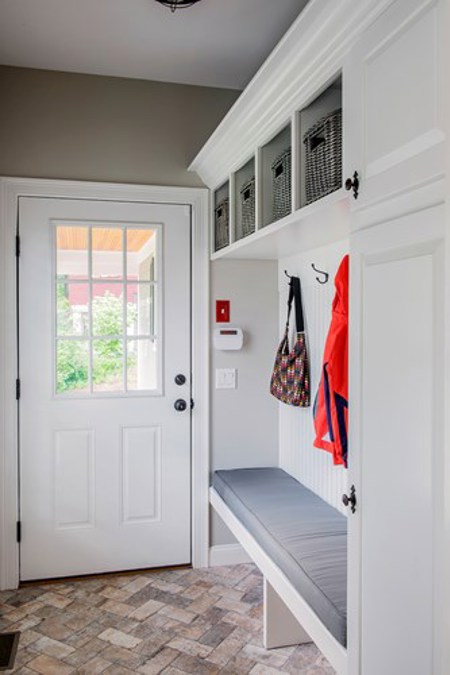 This mudroom is perfect for storing jackets, boots and the kids' sports equipment.